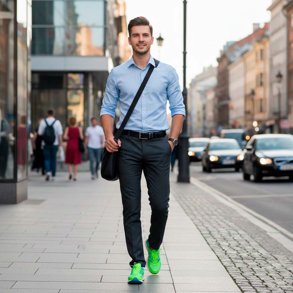 Misturar estilos sem critério cria um visual confuso: camisa social formal com tênis de corrida, relógio esportivo com look social ou peças que parecem de universos diferentes.