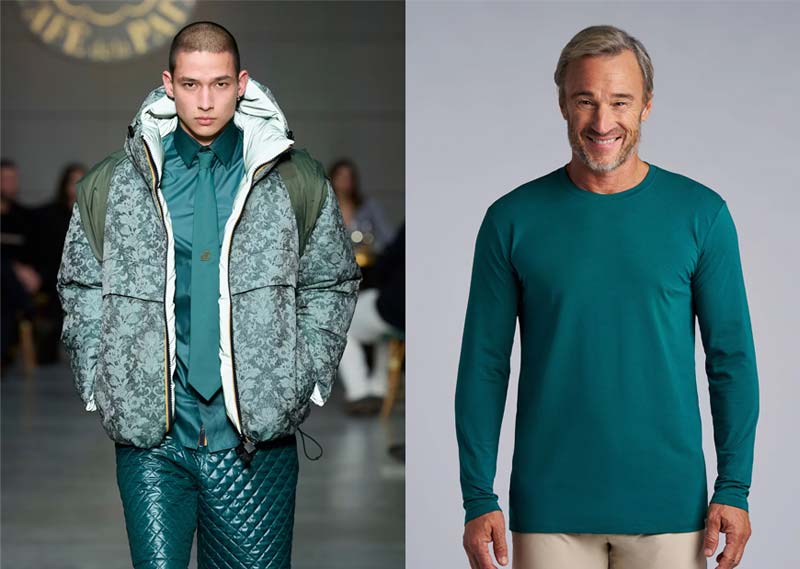 Principal aposta de institutos internacionais de tendência, o Transformative Teal surge como a cor-símbolo de 2026. Mistura equilibrada entre azul e verde, representa a ponte entre o mundo natural e o digital. É um tom moderno e sofisticado, que transita com facilidade entre o casual e o social, podendo aparecer em camisas de alfaiataria, sobreposições e até acessórios. Ele traduz o homem contemporâneo: conectado, mas consciente.